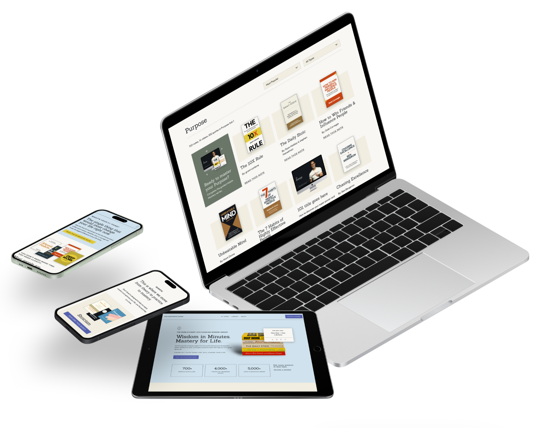 Philosopher’s Notes solves the time gap. We didn't just summarize the books; we extracted the absolute best ideas, connected those ideas with other books and real-life stories, and then turned them into actionable tools.