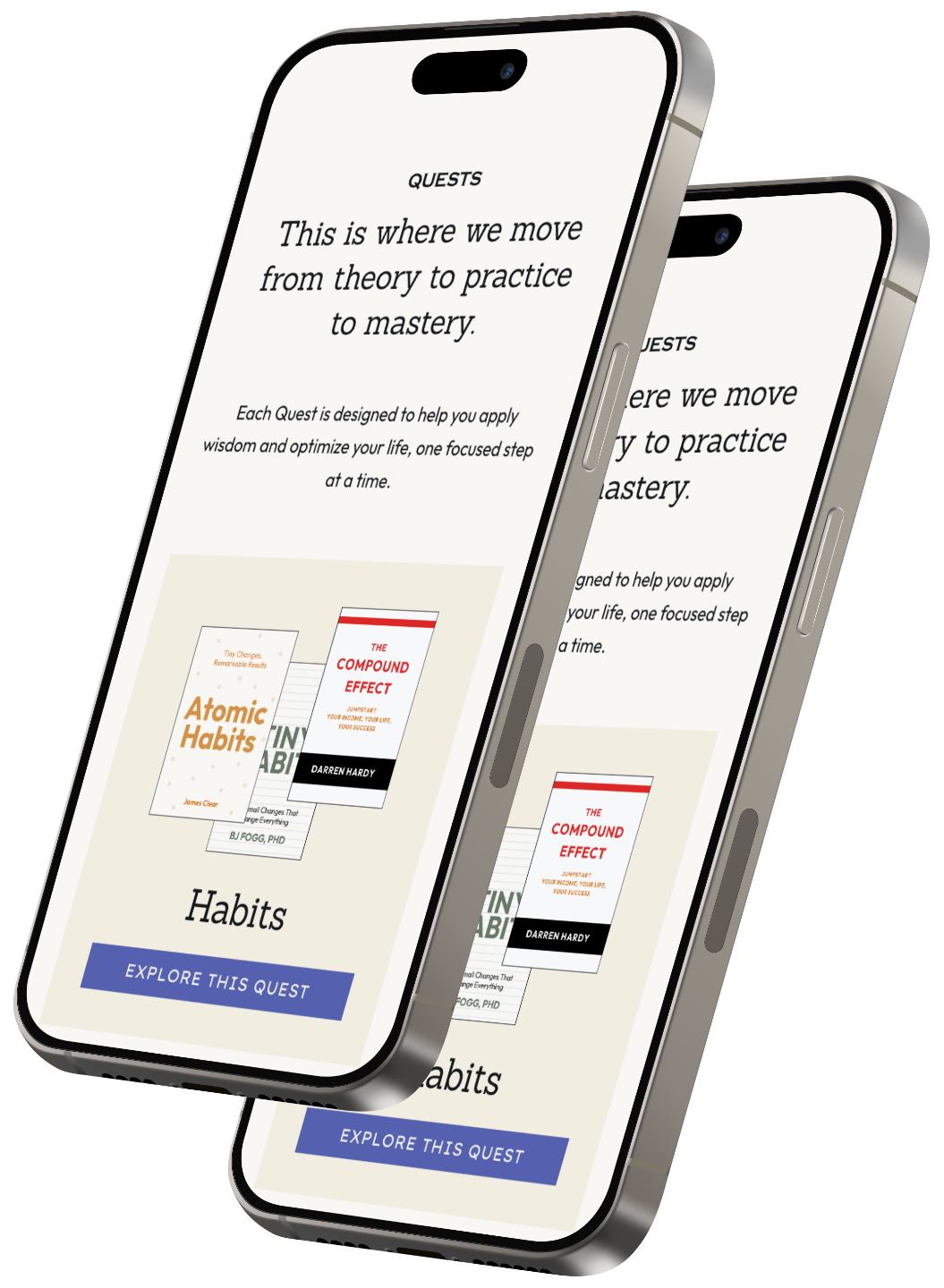 - The Habits Quest: The best insights from Atomic Habits, Tiny Habits, and The Power of Habit + The Habits 101 Masterclass.