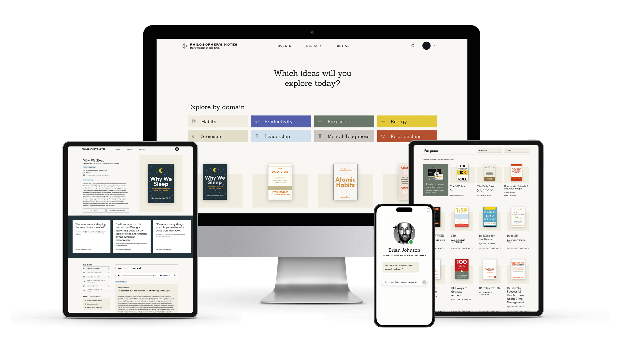 Unlike generic AI summaries, these are hand-crafted by Brian Johnson. He has personally read and analyzed every single title to help you master the ideas and apply them in your life. Brian acts as your guide — highlighting the "Big Ideas" in each book and connecting the concepts across hundreds of different titles. He synthesizes the collective intelligence of the world's best books so you can learn something new every day.